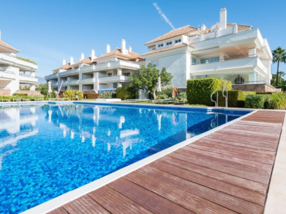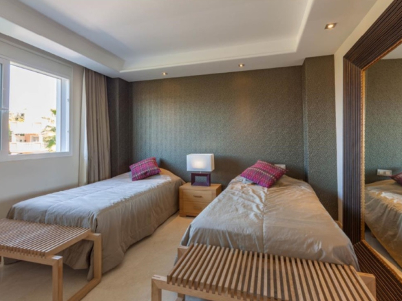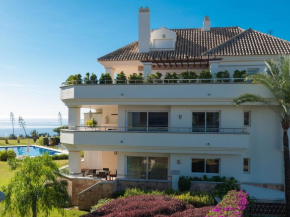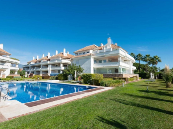 Urbanización en 1ª línea de playa, en el término municipal de Estepona, pero a tan solo 7min a San Pedro de Alcántara y a 10min de Puerto Banus. El complejo está formado por 35 viviendas distribuidas en 4 bloques, divididos El complejo está cerrado y consta de garita de seguridad, cámaras de seguridad, jardines y piscina, gimnasio y sauna.