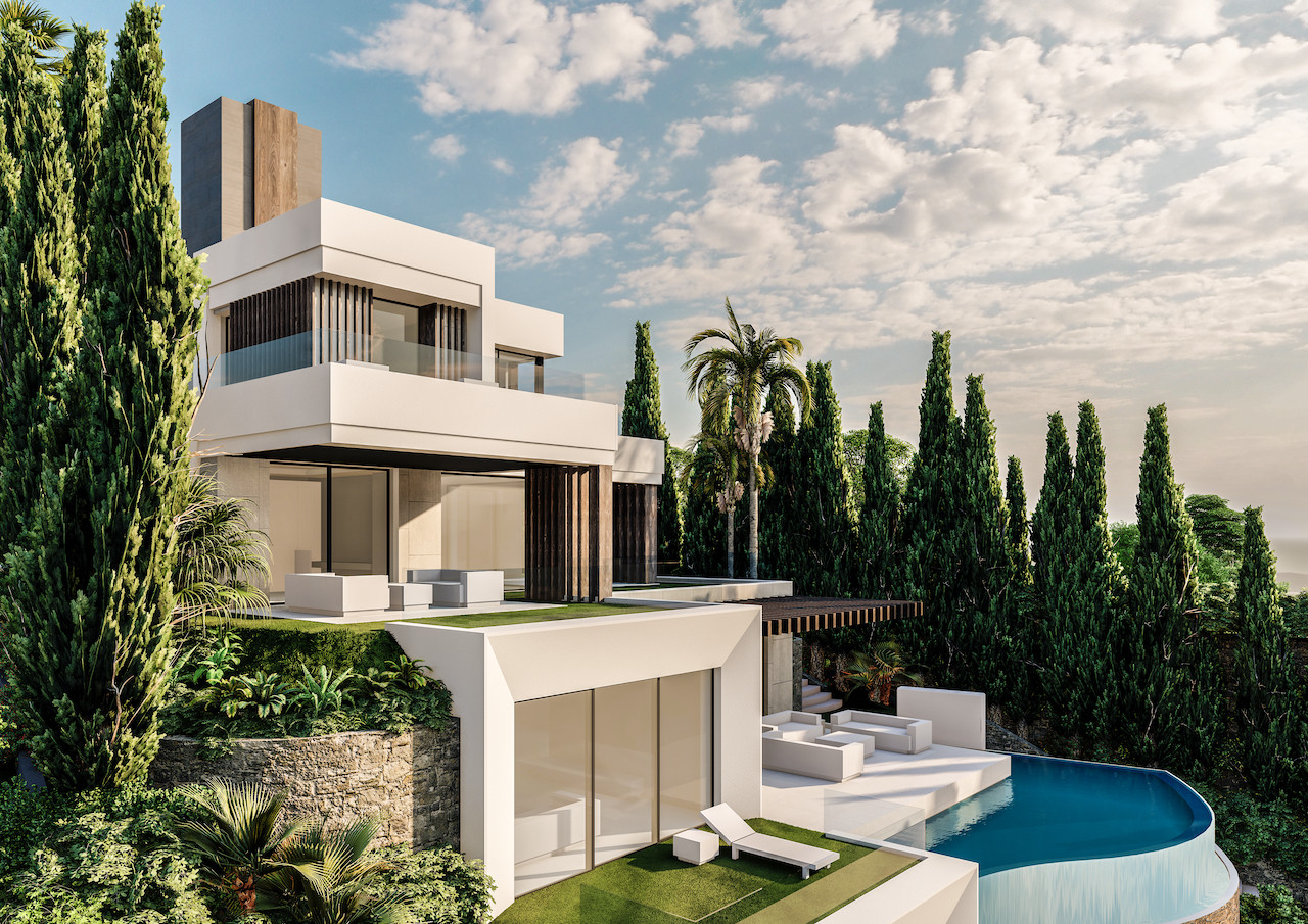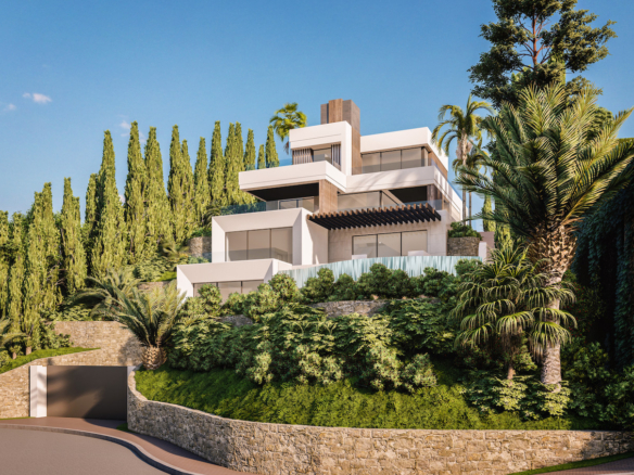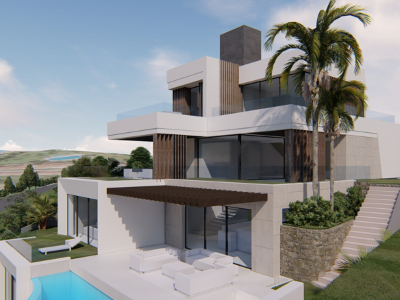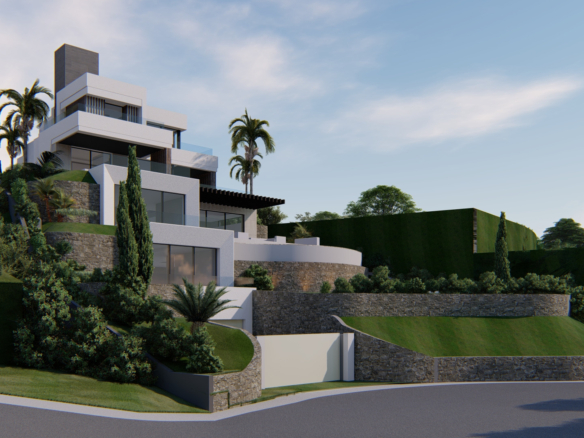 El proyecto con licencia es para una villa moderna contemporánea de 850 m2 de superficie construida interior más 300m2 de terrazas.
