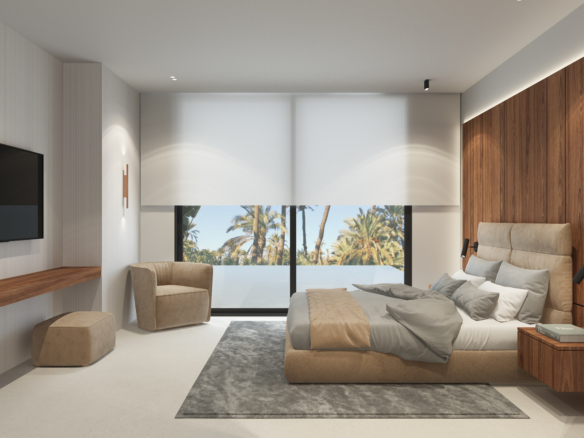 La propiedad se extendería entre dos calles (dentro y fuera de la urbanización de La Pera) e incluiría: amplio salón/cocina/comedor de planta abierta de más de 125 m2 que conduce a una terraza privada, jardín y piscina infinita, suite principal de más de 65 m2, tres dormitorios en suite cada uno con terraza privada, terraza en la azotea con vistas panorámicas, juegos privados/gimnasio/spa, espacio para el quinto o sexto dormitorio en suite de invitados, así como estacionamiento subterráneo/servicios públicos de más de 250 m2.