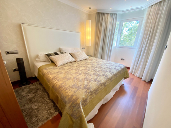 Consta de un salón-comedor lleno de luz con acceso directo a la espaciosa terraza orientada al este con vistas a la piscina y el jardín, cocina americana totalmente equipada con electrodomésticos, 3 dormitorios con armarios empotrados, 3 baños . El baño principal dispone de jacuzzi.