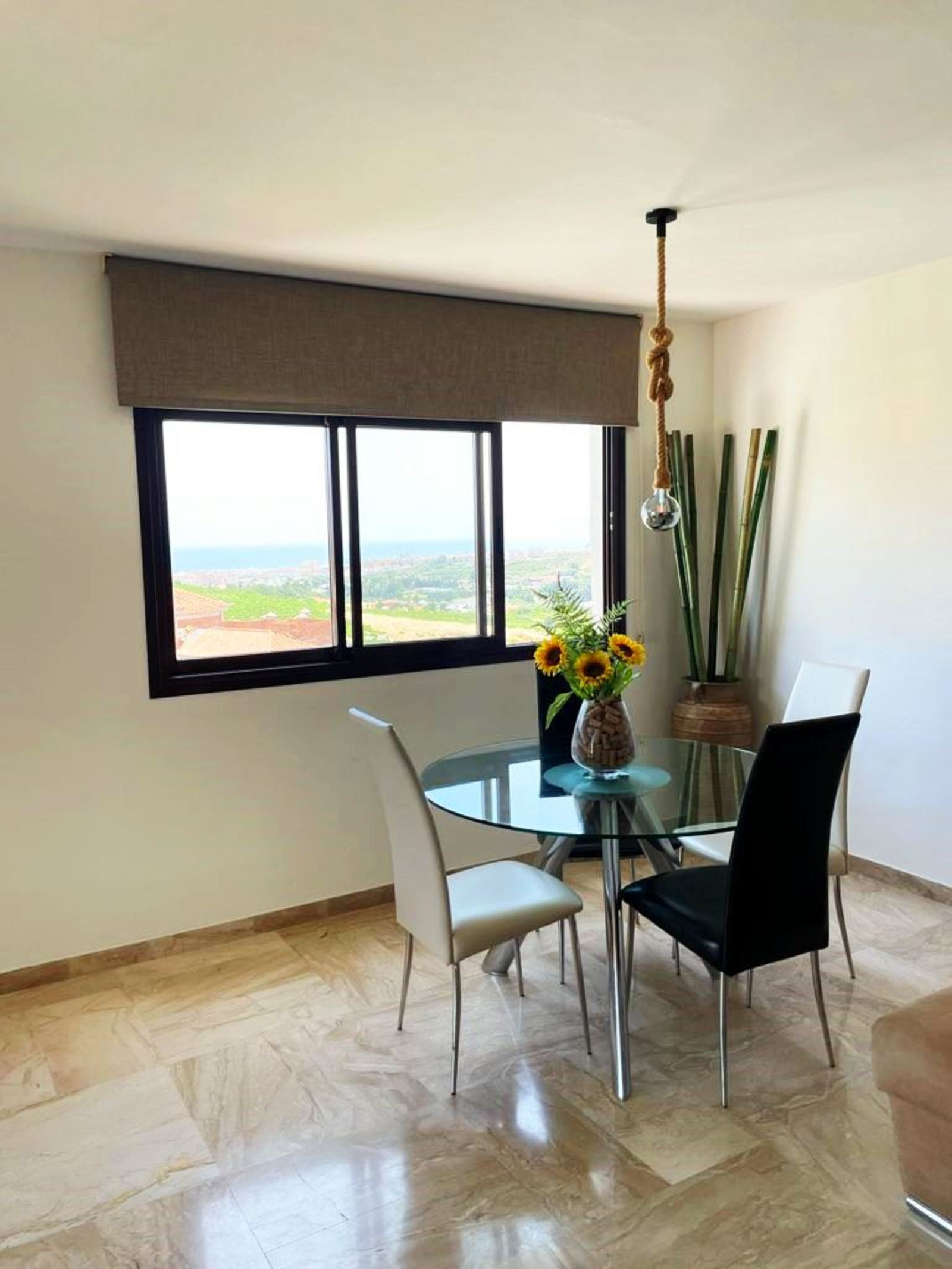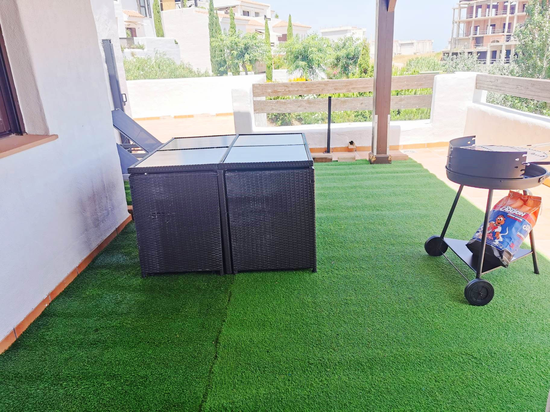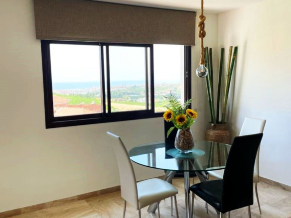Precioso Ático esquinero de 110 m2 útiles más 125m2 de terraza con vistas al mar y a los viñedos de Manilva. Un porche cubierto en la terraza de 20m2 donde pasar las tardes y poder hacer una BBQ.