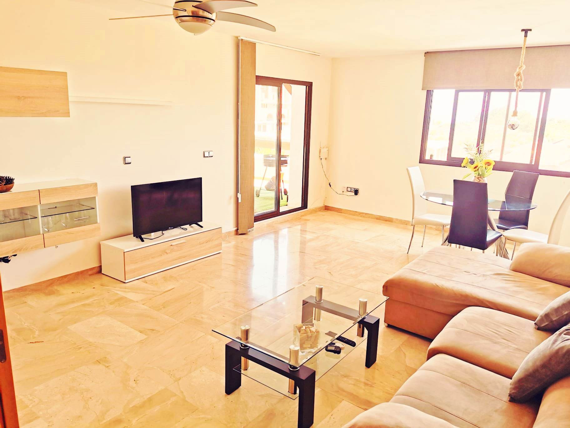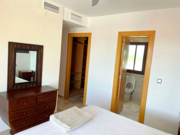 Cuenta además con salón y comedor desde podrás ver el mar, cocina totalmente equipada, 2 baños - 1 de ellos con bañera - y 2 dormitorios con 1 cama de matrimonio cada uno. El dormitorio principal cuenta con una vestidor.