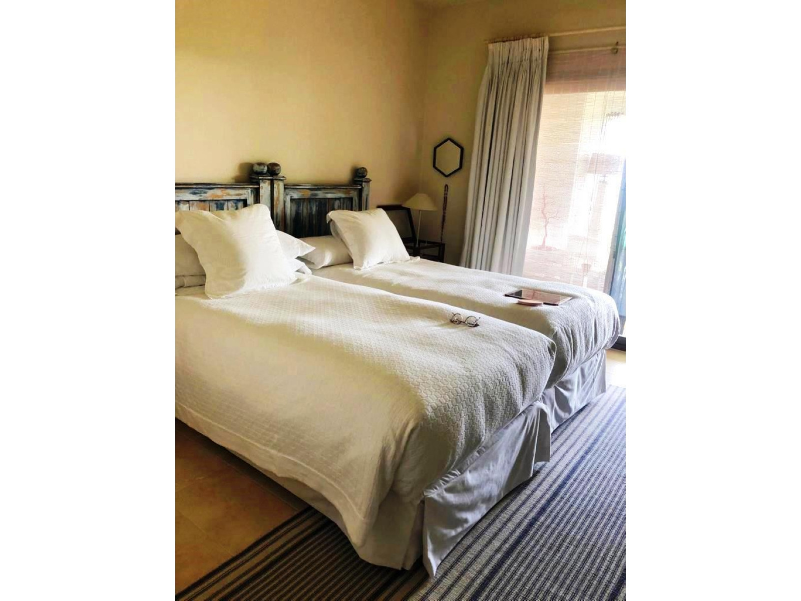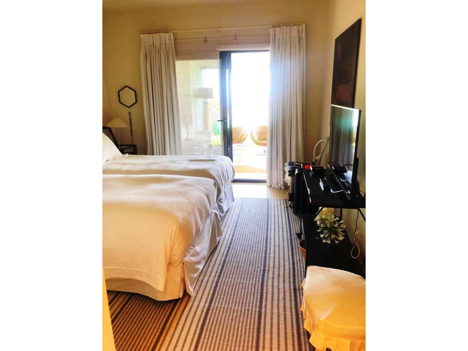 Fantástica planta baja compuesta por dos apartamentos con jardín privado, dos terrazas, patio trasero y tres estacionamientos. Hay dos trasteros. Gran armario. Dispone de cuatro habitaciones dobles, todas con baño en suite y también un aseo de cortesía. El piso se encuentra dentro de la Finca Cortesin, con seguridad 24 horas y las mejores vistas a la Bahía de Casares. La piscina es comunitaria, pero existe la posibilidad de tener una privada en la terraza.