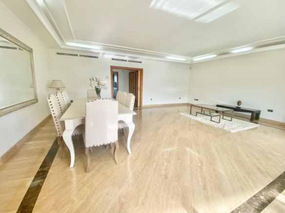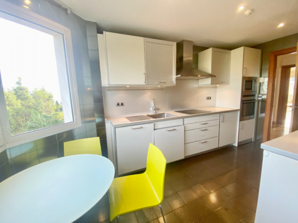 Consta de un salón-comedor lleno de luz con acceso directo a la espaciosa terraza orientada al oeste con vistas a la piscina y el jardín, cocina totalmente equipada con electrodomésticos y lavadero, 2 dormitorios con armarios empotrados, 2 baños y un aseo de invitados. El baño principal dispone de jacuzzi.