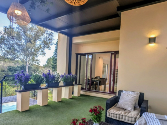 Disfruta de privacidad máxima y vistas impresionantes en la villa mejor ubicada de Parque Botánico —un lujoso resort cerrado enclavado entre los exclusivos enclaves de Estepona y Benahavís en la soleada Costa del Sol—. Elevada en una parcela privilegiada sin vecinos directos, esta villa independiente se inunda de luz natural todo el día, ofreciendo aislamiento absoluto y panorámicas increíbles sobre exuberantes bosques, majestuosas montañas y el centelleante Mediterráneo. Rodeada de los amplios jardines botánicos del resort, cascadas y senderos serenos a lo largo del río Guadalmansa —con restos históricos de una antigua mina romana—, este refugio está a solo 100 metros de rutas naturales, 5 minutos de playas prístinas como Playa del Saladillo, 10 minutos del casco antiguo rebosante de flores y marina de Estepona, y 15 minutos del glamour de Puerto Banús. La proximidad al Colegio Americano Atlas y al hospital Hospiten Estepona la hace ideal para familias, mientras el fácil acceso a la A-7 te conecta con golf de clase mundial en Los Flamingos y la vibrante escena de Marbella.