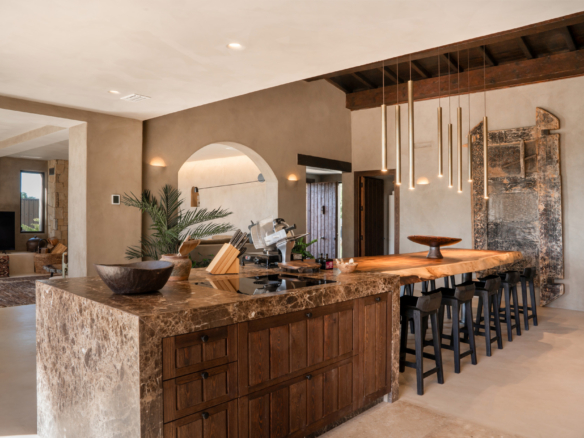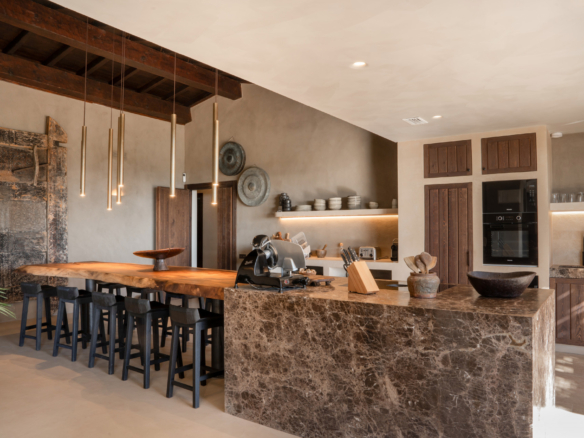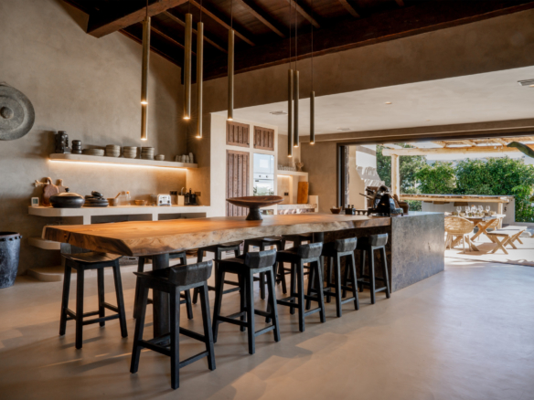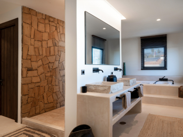 El disseny de la vila es manté en el seu únic caràcter, amb terres de formigó polits a tota la casa, sota l'escalfament al bany, extra insulació a les parets i unitats d'aire individual per a aire condicionat, així com a fans del sostre. La sostenibilitat també és la clau, amb 24 plafons solars que proveeixen aigua calenta i calor a la piscina.