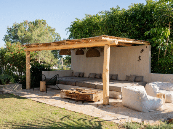 Amb orientació sud, la propietat té un bonic jardí que integra diverses àrees de descans, una pista petanque i una pergola exòtica amb un racó ideal de saló per relaxar-se. La terrassa principal inclou una barbacoa argentí i una elegant taula de fusta per gaudir dels sopars de l'aire lliure.