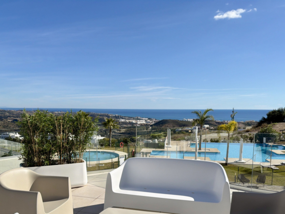 Este excepcional ático dúplex se encuentra en lo más alto del valle de La Cala, ofreciendo una combinación única de privacidad, amplitud y vistas espectaculares en todas las direcciones. Situado en una posición elevada, la vivienda cuenta con varias terrazas amplias, incluida una gran terraza principal conectada directamente con el salón y el dormitorio principal, además de una piscina de inmersión ideal para relajarse.