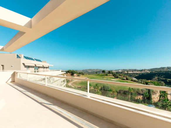 Fantastisk tre værelses, sydvendt penthouse beliggende i den private bopæl i Sun Valley l, inden for La Cala Golf Resort. La Cala Resort har tre 18-hullers golfbaner, et hydroterapi center og Spa, et 4-stjernet hotel, tennisbaner, en løbebane, et fitnesscenter med kvalificerede trænere, en professionel fodboldbane, en Golf Academy og 24-timers sikkerhed i et fantastisk naturligt miljø. Penthouse har en lys åben plan stue og køkken, et soveværelse med en-suite badeværelse, to værelser med fælles badeværelse og en enorm terrasse med storslået åben udsigt over golfbanen og havet.