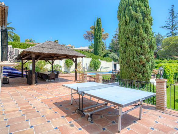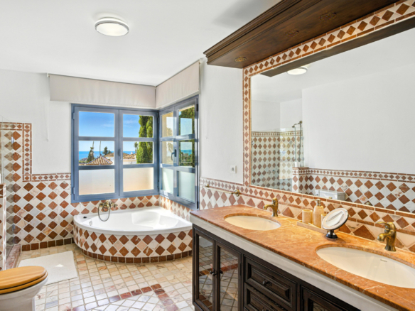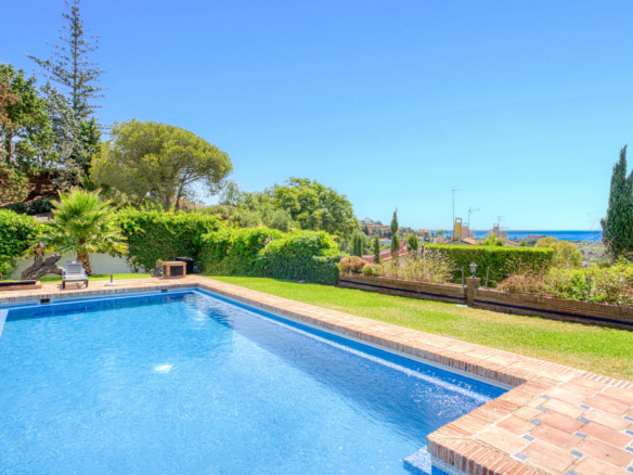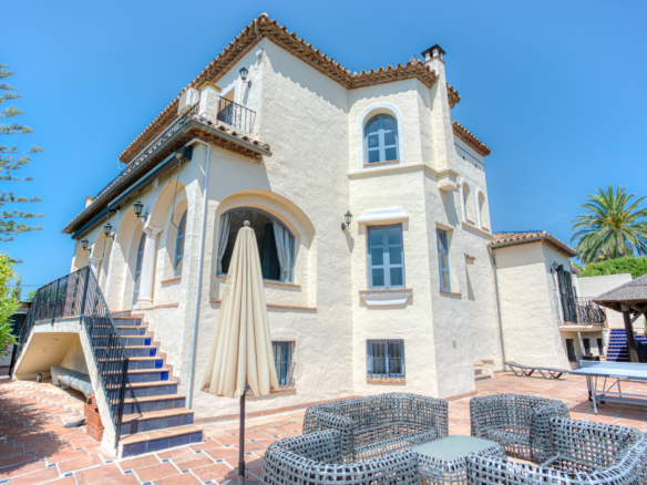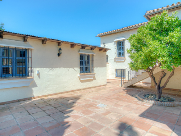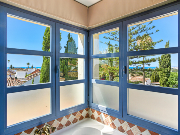 Rummelig syv-værelses, sydvendt villa med havudsigt, beliggende i det fantastiske område Estepona. Blot få minutter væk fra stranden, supermarkeder, restauranter og strand barer, denne ejendom tilbyder den perfekte kombination af privatliv, komfort og en fremragende placering. Villaen har privat swimmingpool, en stor privat have og en generøs garage med plads til op til fem biler. Hovedgulvet har et fuldt udstyret køkken, en rummelig stue, et badeværelse, to soveværelser og et vaskeri. Det øverste niveau er dedikeret til master soveværelse, som har en walk-in garderobe og et eget badeværelse. Det lavere niveau fungerer som en uafhængig lejlighed, der tilbyder fire ekstra soveværelser, to badeværelser, et spil rum, og et separat køkken ideel for gæster eller udvidet familie. Et perfekt hjem for dem, der søger plads, fantastisk udsigt og nærhed til alle væsentlige faciliteter.