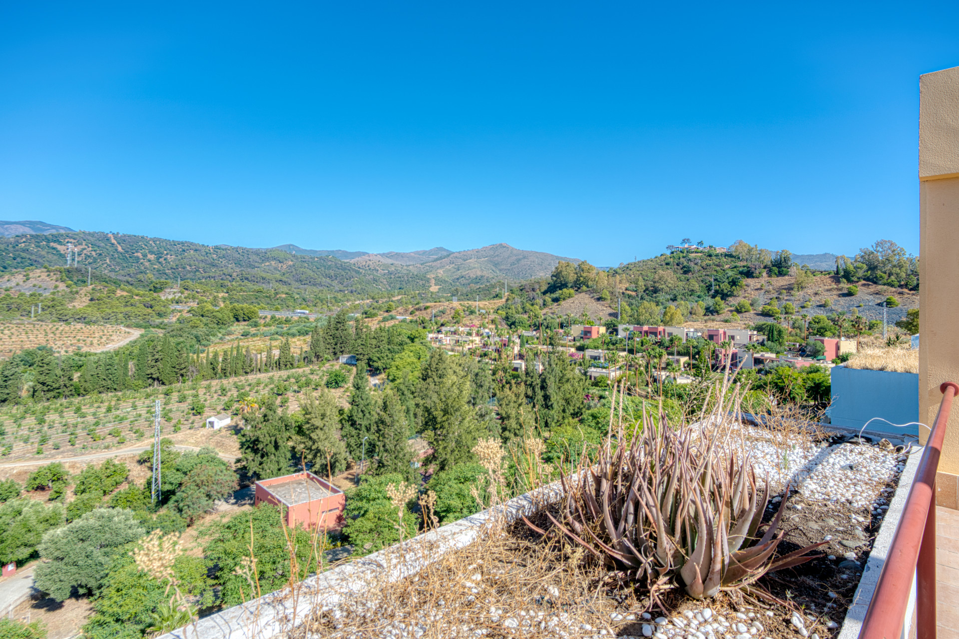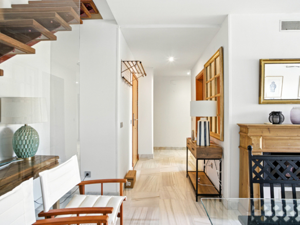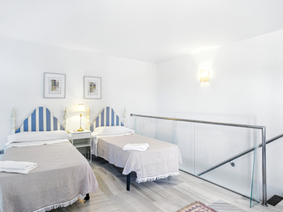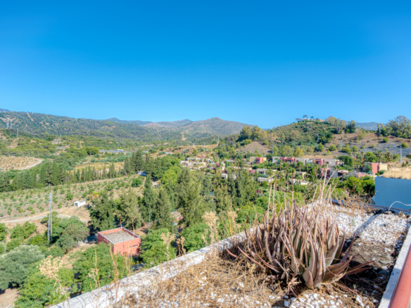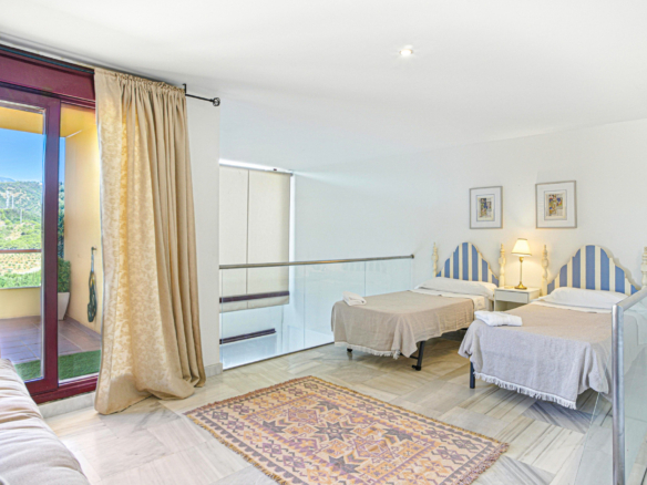 Rummelig og vestvendt, denne charmerende duplex penthouse har tre generøse soveværelser, der tilbyder panoramaudsigt over frodige haver og fredfyldte landskaber, beliggende i Parque Botanico, Estepona. Den indbydende stue indeholder en hyggelig pejs og åbner på en dejlig terrasse, ideel til at nyde eftermiddagssolen. Et fuldt udstyret køkken, indbyggede garderobeskabe, vinduessko og varm/kold aircondition tilføjer komfort og funktionalitet i hjemmet. Ejendommen ligger i et sikkert gated kompleks med 24 timer sikkerhed og har privat parkeringsplads og et opbevaringsrum. Gæsterne vil nyde adgang til tropiske, smukt vedligeholdte haver, flere udendørs swimmingpools, indendørs opvarmet pool, fitnesscenter, sauna og en sæsonbestemt bar-restaurant. Blot en kort køretur fra stranden og kystfaciliteter, denne rolige indstilling kombinerer naturlig skønhed med onsite bekvemmelighed. Med en turistlicens på plads, giver den en perfekt mulighed for investering.