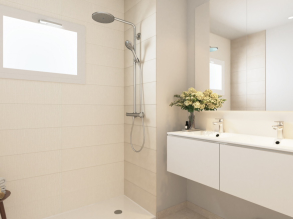 La configuración dependerá del tipo de apartamento que elija, pero los amplios dormitorios cuentan con armarios empotrados y un baño doble en suite con el dormitorio principal. Una cocina totalmente equipada con unidades de alto brillo blanco se suma a la sensación moderna preferida por nuestros clientes internacionales.