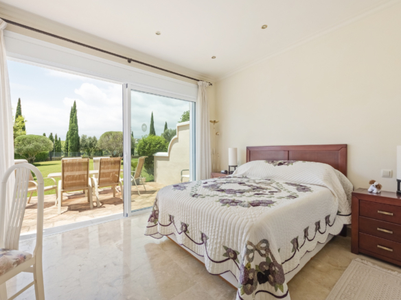 En el interior, el luminoso salón-comedor de planta abierta fluye con naturalidad hacia el exterior, creando un ambiente perfecto para disfrutar del estilo de vida mediterráneo durante todo el año. La vivienda cuenta con una espaciosa suite principal con un elegante baño en suite, con doble lavabo, bañera y ducha independiente, una cocina totalmente equipada y un aseo de invitados. Tanto el salón como el dormitorio principal tienen acceso directo a la terraza y los jardines.
