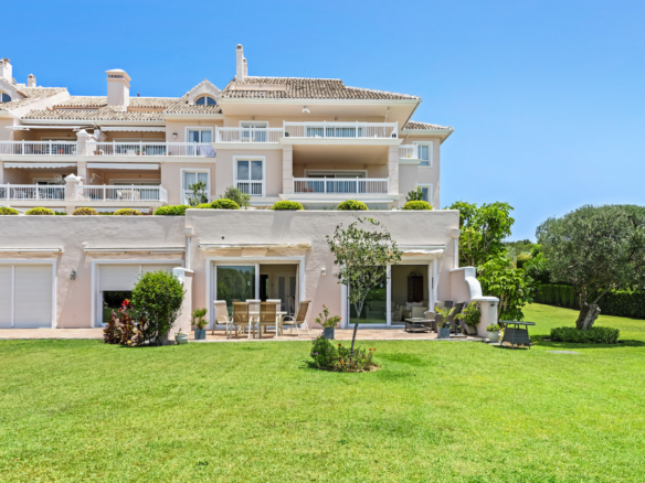 Un apartamento en planta baja verdaderamente especial, que se siente como una finca privada gracias a sus amplias terrazas que se abren directamente a los exuberantes jardines, creando una excepcional sensación de privacidad, amplitud y conexión con la naturaleza.