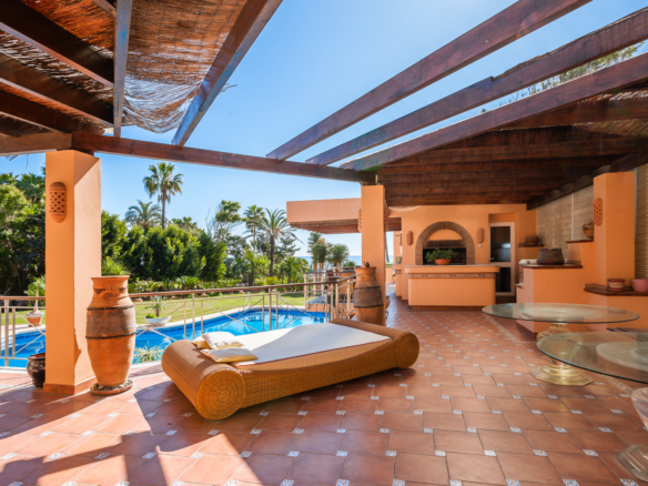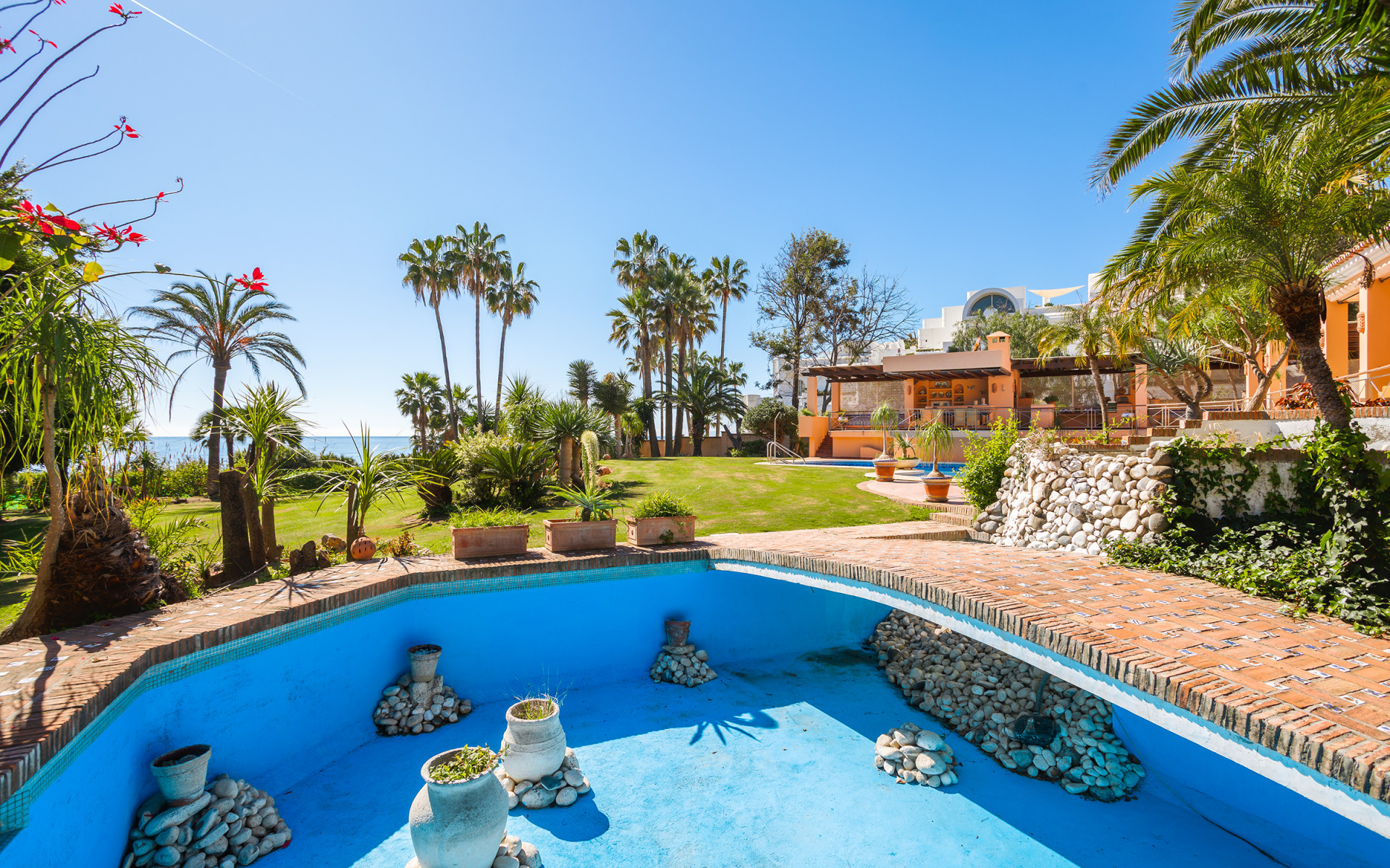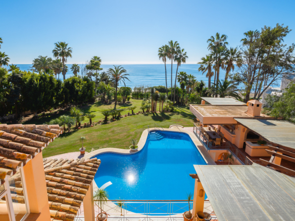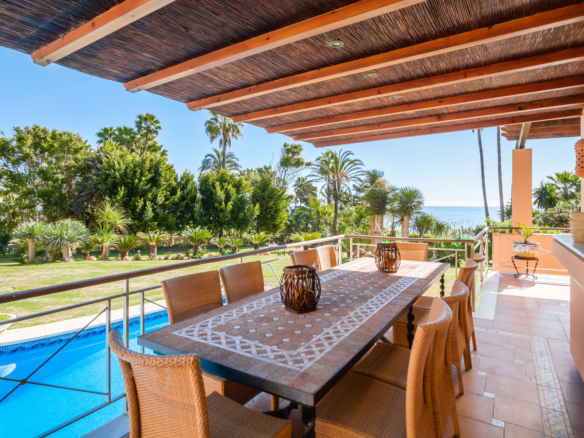 Enclavada a lo largo de la prístina costa de la Nueva Milla de Oro, esta impresionante villa en primera línea de playa personifica la vida de lujo en su máxima expresión. Con un total de 8 dormitorios, 10 cuartos de baño y un apartamento independiente para invitados, esta amplia propiedad ofrece un confort y una sofisticación incomparables.