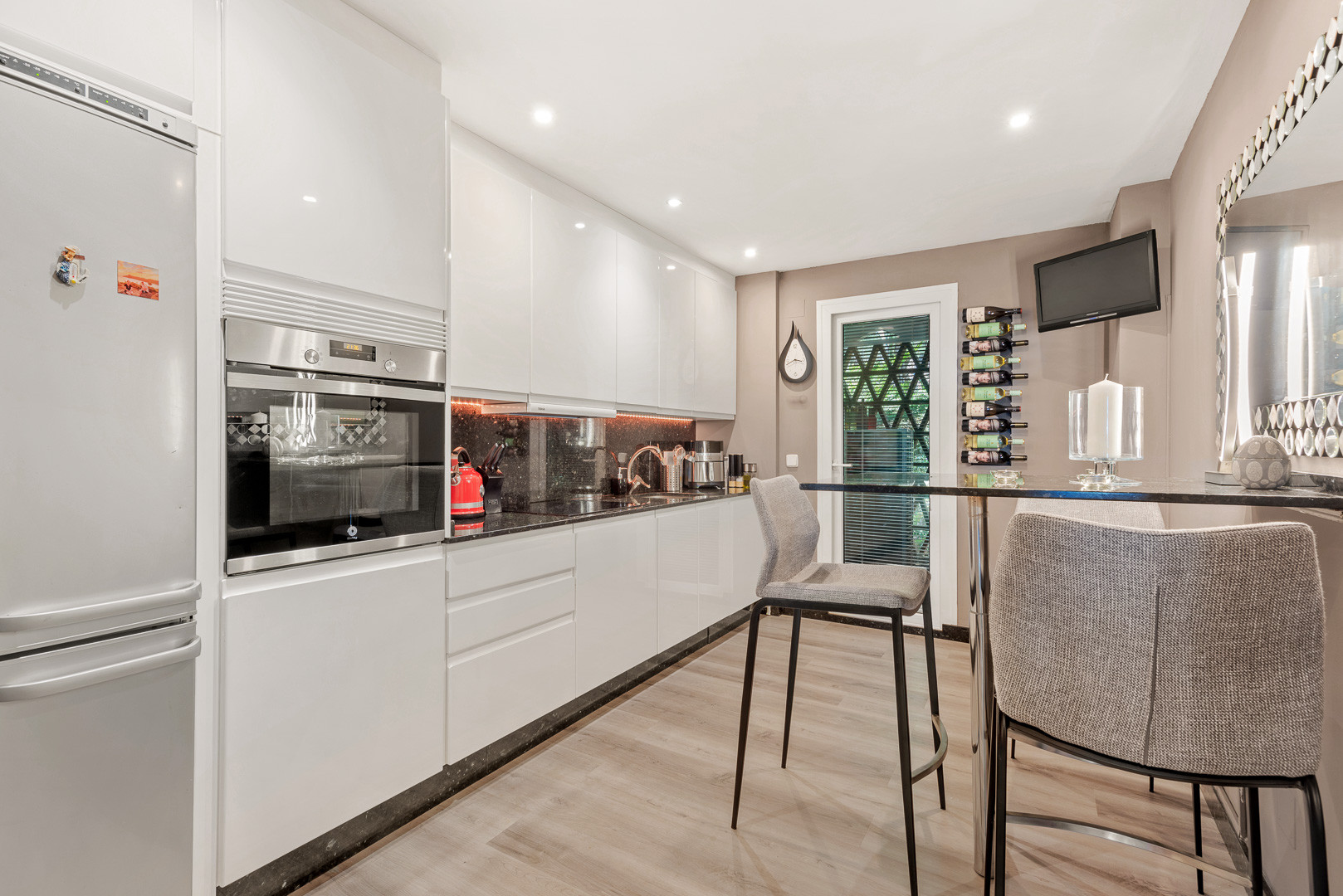 The highlight of the residence is the beautiful, spacious southwest-facing terrace that boasts spectacular views in a completely private environment, complemented by an electric retractable sunshade. It offers three distinct spaces perfect for al fresco dining and an undercover sitting area, with the western corner offering the ideal sunbathing spot with stunning views.