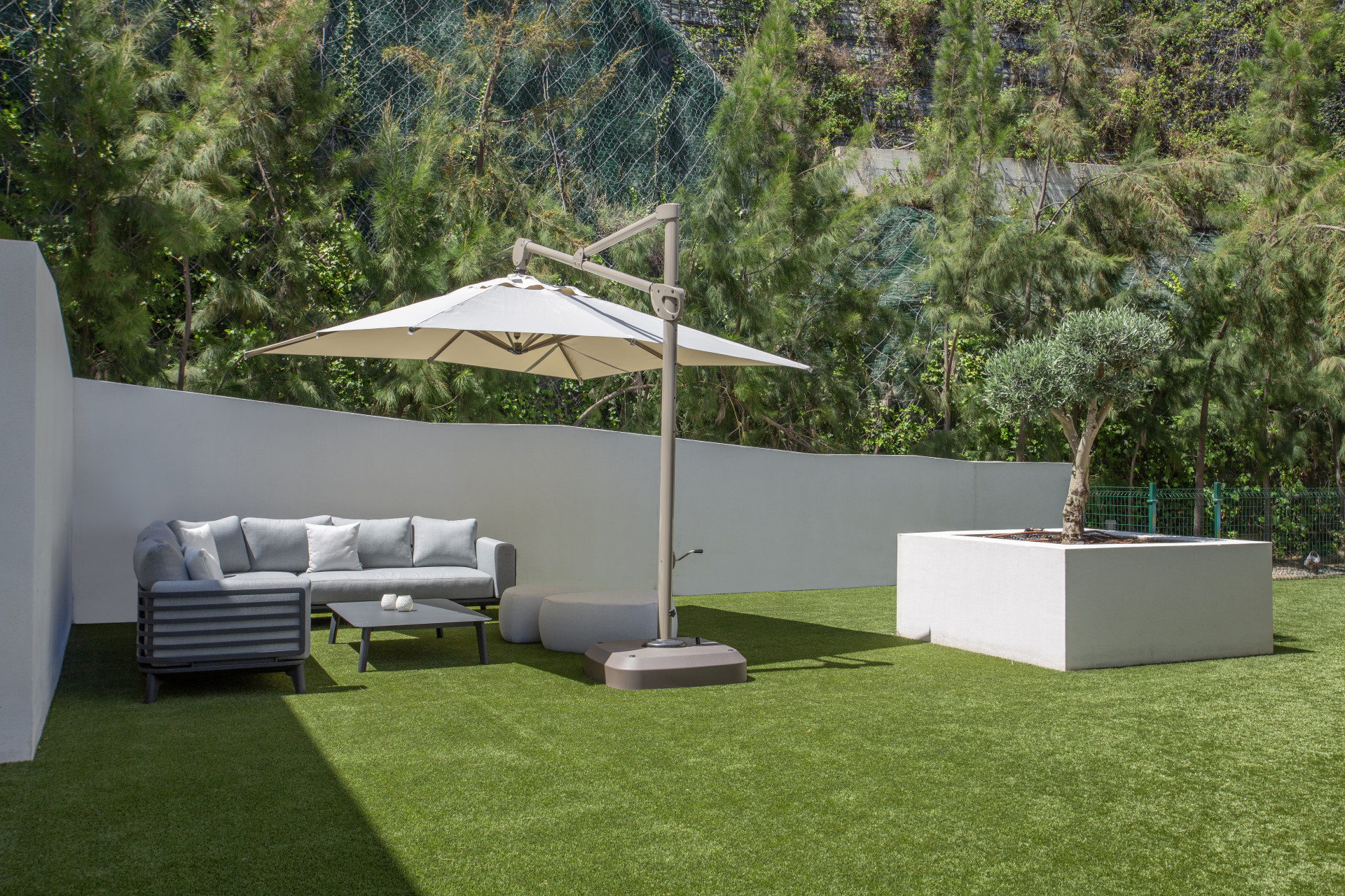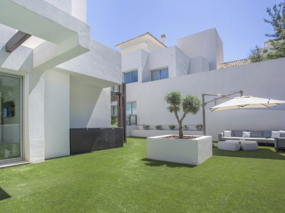 Uno de los aspectos más destacados del apartamento es su amplia terraza frontal, que ofrece algunas de las mejores vistas al mar de todo el complejo, el lugar perfecto para relajarse, cenar al aire libre o simplemente disfrutar del paisaje. En la parte trasera de la propiedad, un gran patio privado proporciona un refugio tranquilo y soleado con espacio suficiente para descansar o crear su propia zona chill-out.