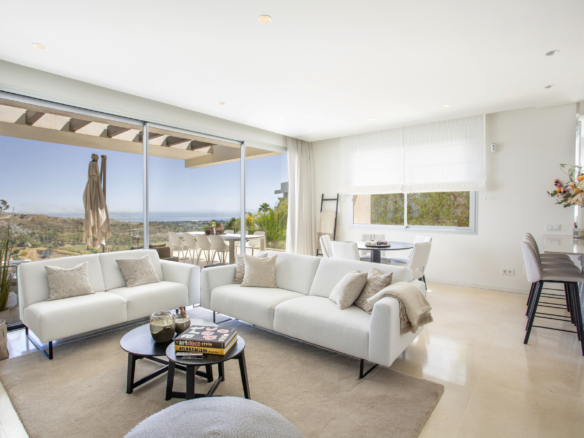 Este elegante apartamento de 3 dormitorios se encuentra en el prestigioso desarrollo Marbella Club Hills, enclavado en las tranquilas colinas sobre Marbella. Rodeado de naturaleza y ofreciendo una tranquilidad absoluta, el apartamento disfruta de espectaculares vistas panorámicas al mar Mediterráneo e incluso a las lejanas montañas del Atlas en África, un entorno verdaderamente impresionante.