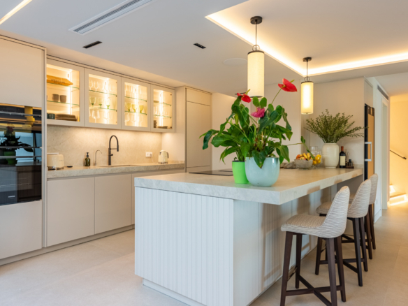 The kitchen is a true highlight — designed with exquisite natural finishes and fitted with top-of-the-line appliances. A large central island and adjacent dining area, flooded with natural light, make it perfect for both everyday living and entertaining. Every detail in this home has been custom-made to measure, creating a level of quality and individuality rarely seen on the market.