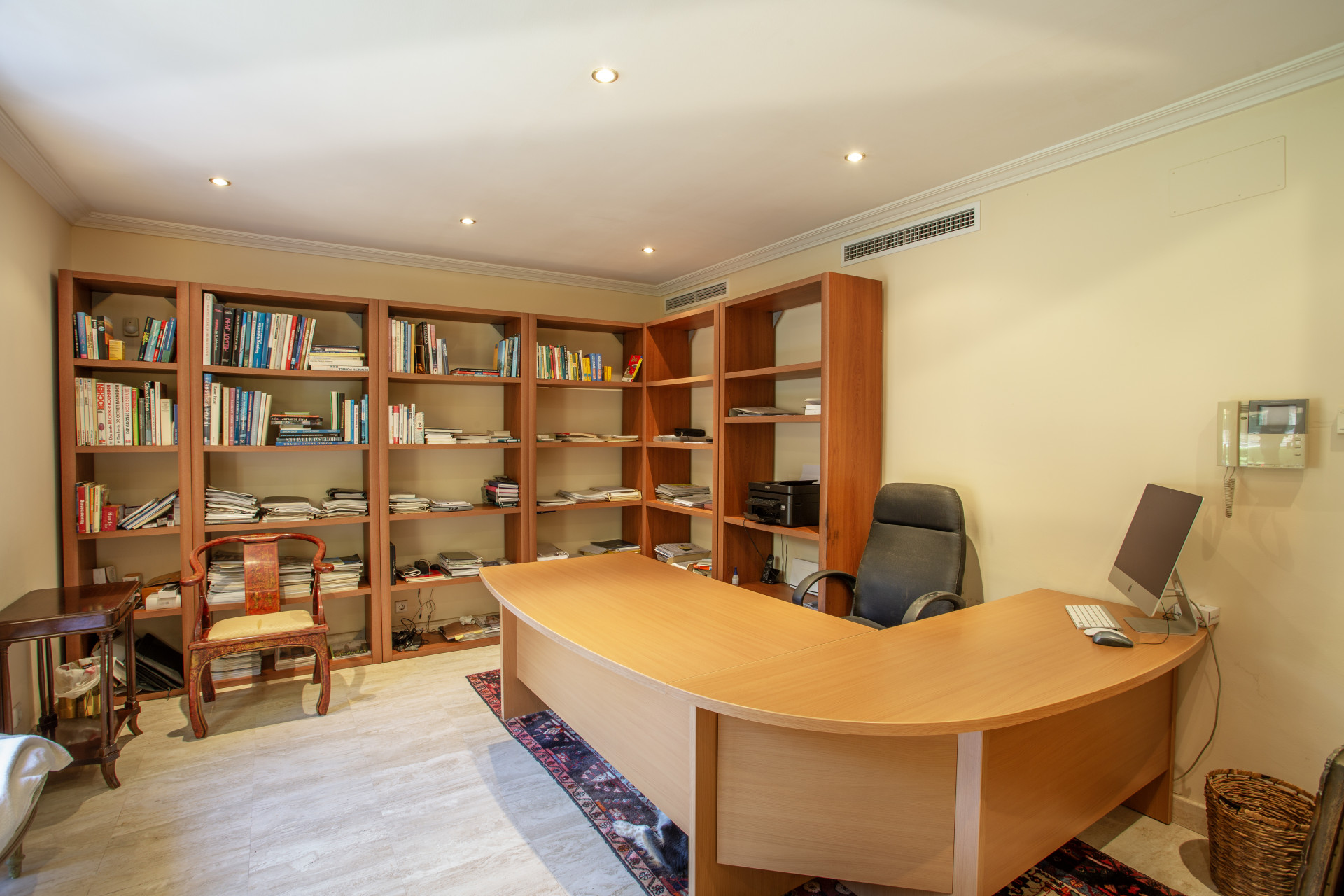 La planta inferior ofrece un espacio versátil que incluye una sala multiusos, sauna, baño, trastero y dependencias para el personal, con amplio potencial para instalaciones de entretenimiento o bienestar personalizadas.