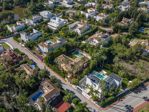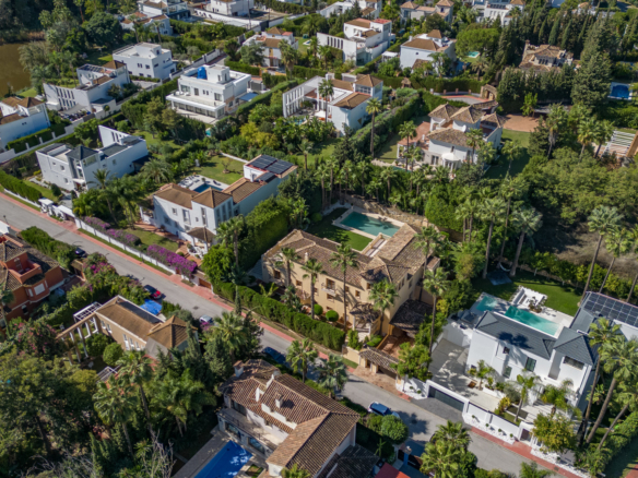 Esta villa de lujo es una joya única en la Costa del Sol, que representa la elegancia atemporal y está construida con los mejores materiales, una calidad excepcional cada vez más difícil de encontrar en el mercado actual. Ubicada entre los exuberantes paisajes de los principales campos de golf de Nueva Andalucía, la villa goza de una codiciada orientación suroeste, inundando el hogar de luz natural y ofreciendo tranquilidad en un enclave residencial exclusivo. Su ubicación privilegiada permite un acceso fácil a la famosa oferta gastronómica de Aloha, su vibrante vida nocturna, el icónico Puerto Banús y sus impresionantes playas, combinando comodidad con un lujo sin igual.