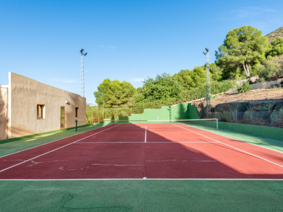 Justo debajo de la vivienda principal, un gimnasio totalmente equipado de 72 m² dispone de un completo set de pesas, mesa de ping-pong, ducha, aseo, baño turco y podría convertirse fácilmente en un apartamento independiente si se desea. Una pista de tenis privada complementa las excepcionales instalaciones recreativas de la finca.