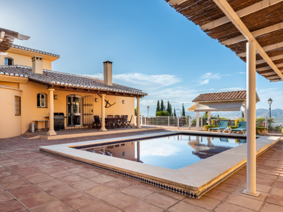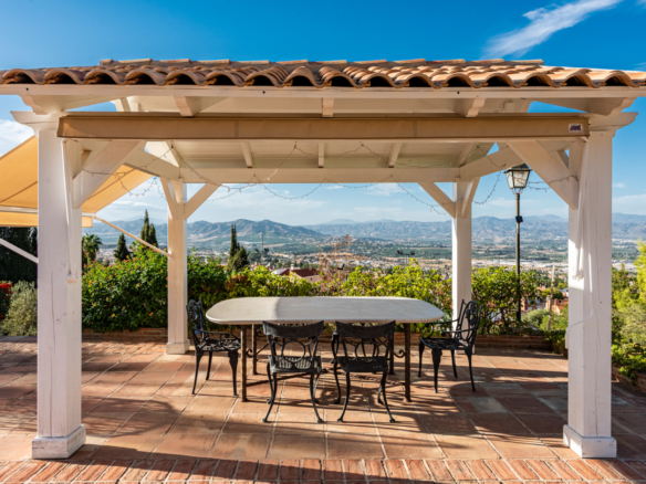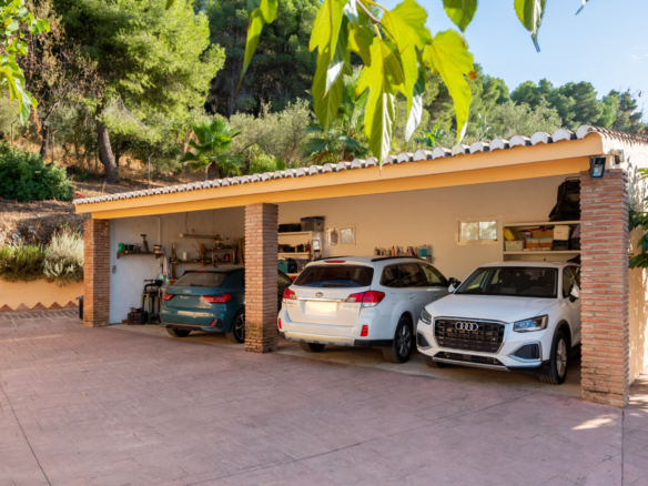 La vida al aire libre es igualmente impresionante: una piscina de agua salada autolimpiable (8 x 5 m) se complementa con una zona de barbacoa, un porche junto a la piscina de 35 m², un patio de 80 m² y una zona de aparcamiento cubierto de 60 m². En la parte frontal de la casa, una encantadora pérgola con mesa de comedor ofrece el entorno perfecto para disfrutar de comidas al aire libre mientras se contemplan las espectaculares vistas al valle.